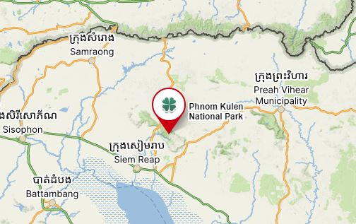 Visited Phnom Kulen Waterfall. It is located within Phnom Kulen National Park, about 48 km northeast of Siem Reap, Cambodia. The park is considered a sacred mountain, and to access the waterfall, one must follow the roads towards Banteay Srei and then turn right to enter the park.